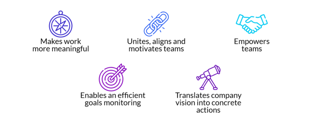 Alignment: OKRs help align the efforts of individuals and teams toward a common purpose. By setting clear OKRs, everyone can understand and work towards the strategic priorities.